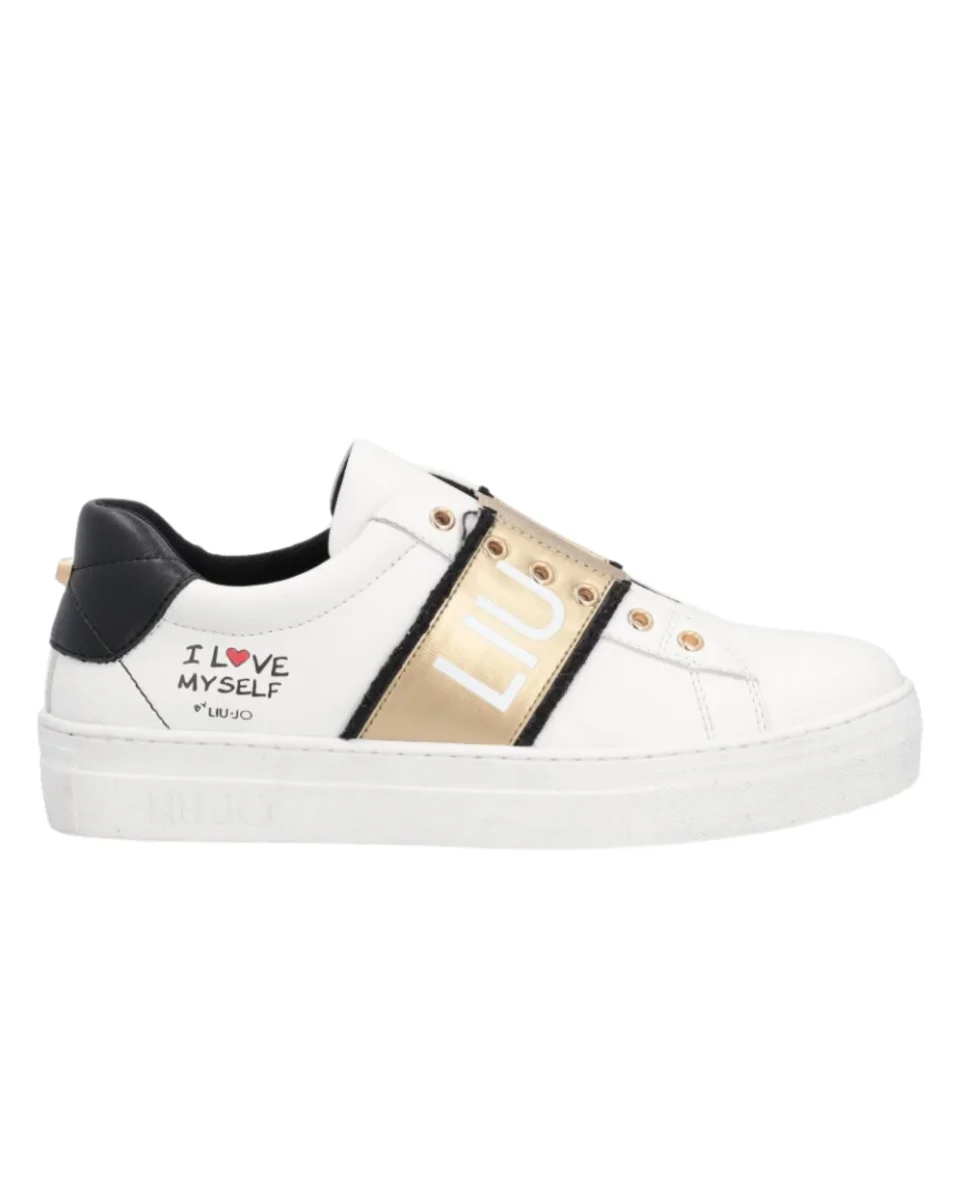 Liu Jo Scarpe Babol 01 Sneakers bianco pelle logo oro