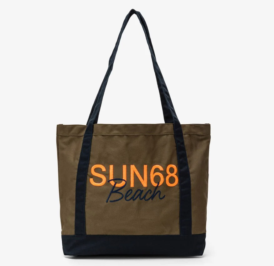 Sun68 Tote Bag Cabardine Cotone Verde Militare Scuro