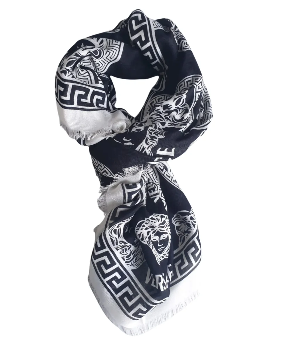 Versace Foulard Stola Pashmina 140×140 cm Nero in Modal
