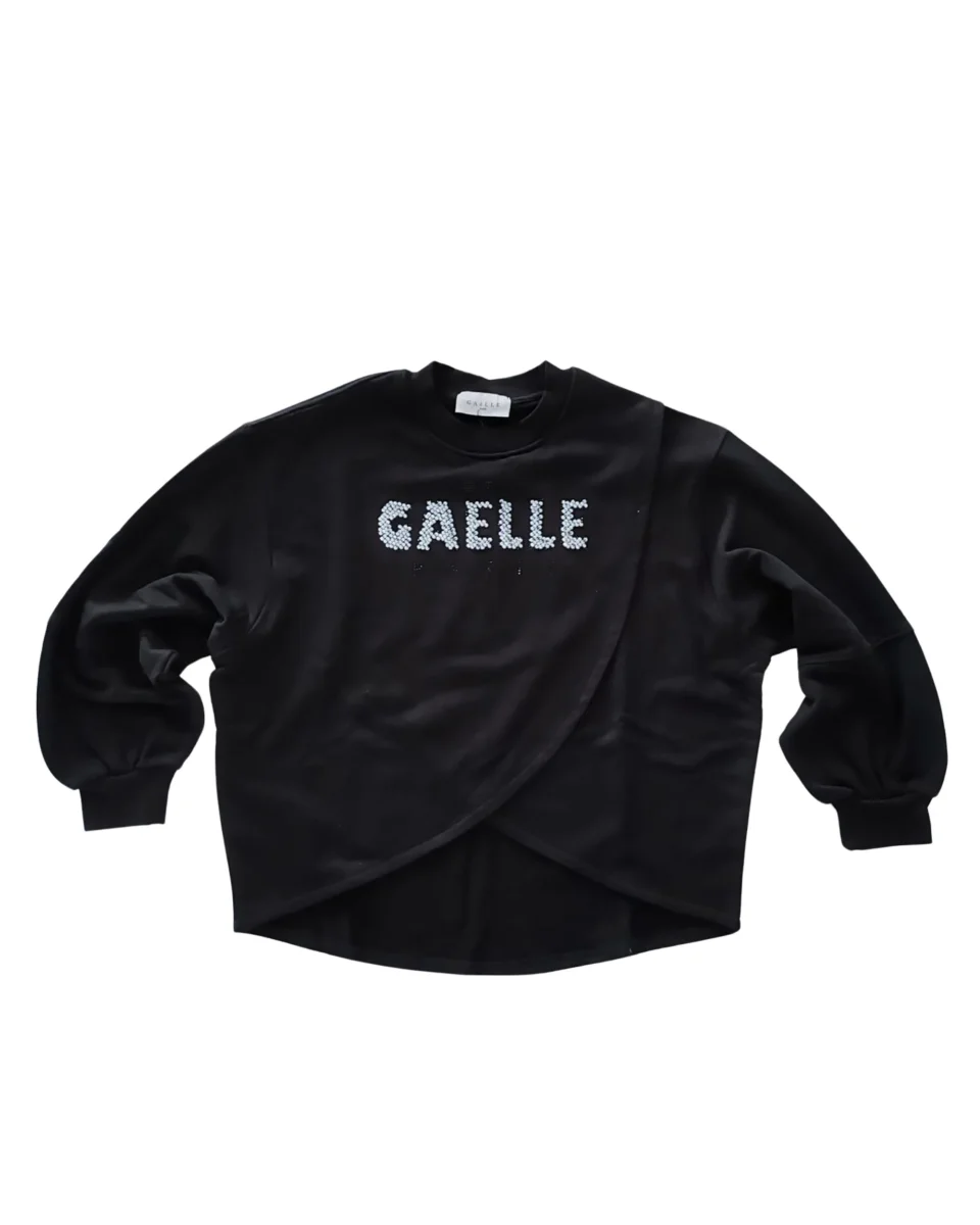 Gaelle Felpa apertura sul retro con logo su fronte nero e strass