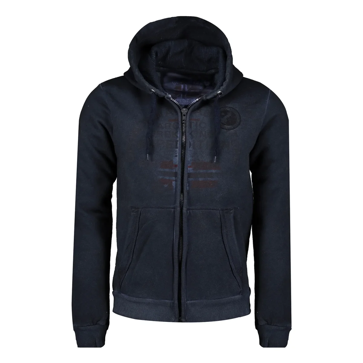 Geographical Norway Felpa Flyer Full Zip con Cappuccio Sport Blu Uomo