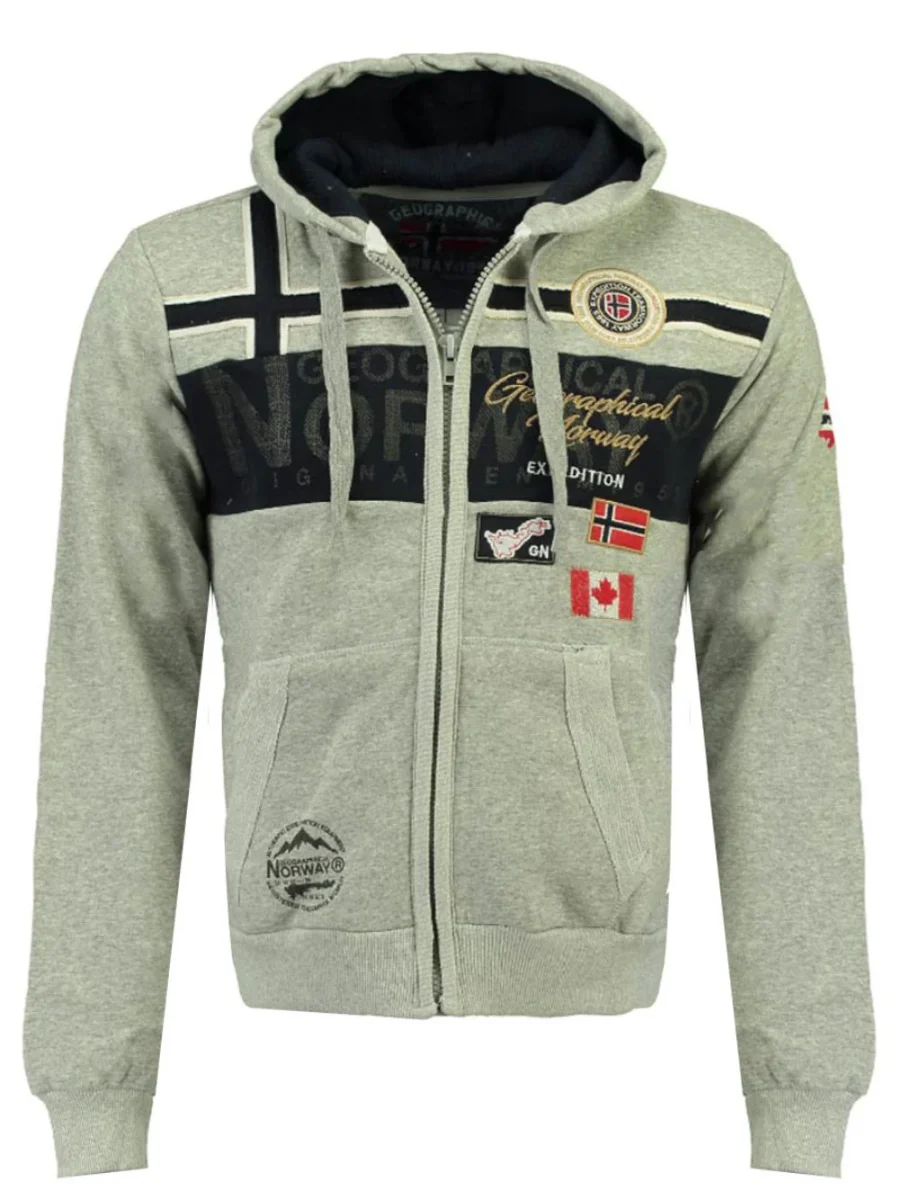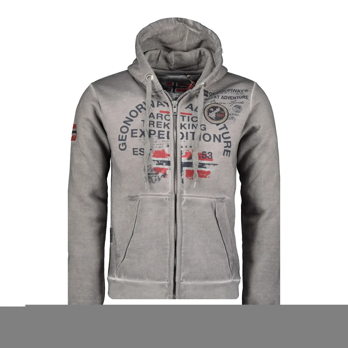 Geographical Norway Cappuccio Full Zip Ricamo Logo 2 Tasche Grigio Uomo